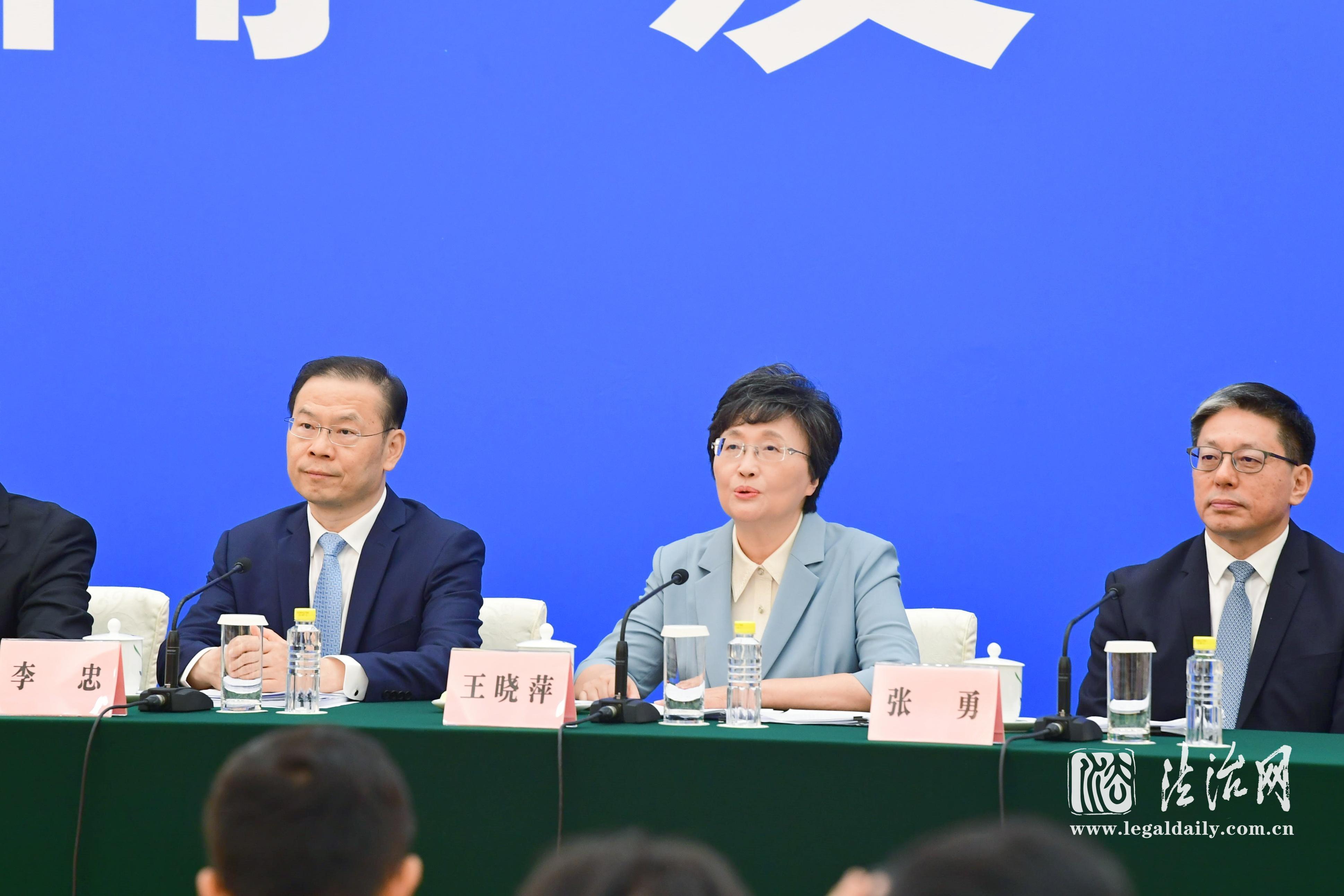 9月13日下午,全國(guó)人大常委會(huì)辦公廳舉行新聞發(fā)布會(huì)。圖為人力資源和社會(huì)保障部部長(zhǎng)王曉萍回答記者提問。張峻銘 攝