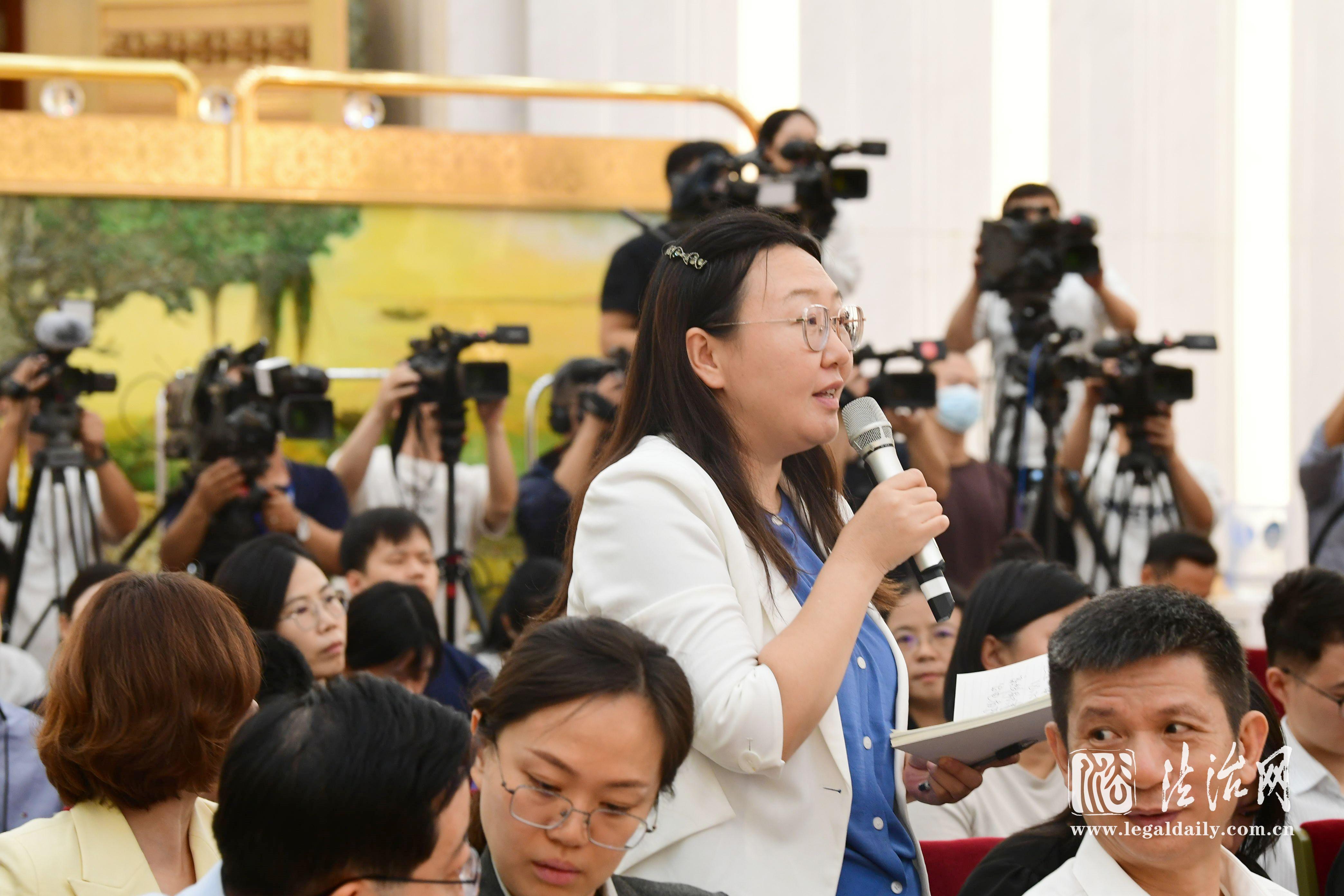 9月13日下午,全國(guó)人大常委會(huì)辦公廳舉行新聞發(fā)布會(huì)。圖為經(jīng)濟(jì)日?qǐng)?bào)記者提問(wèn)。張峻銘 攝