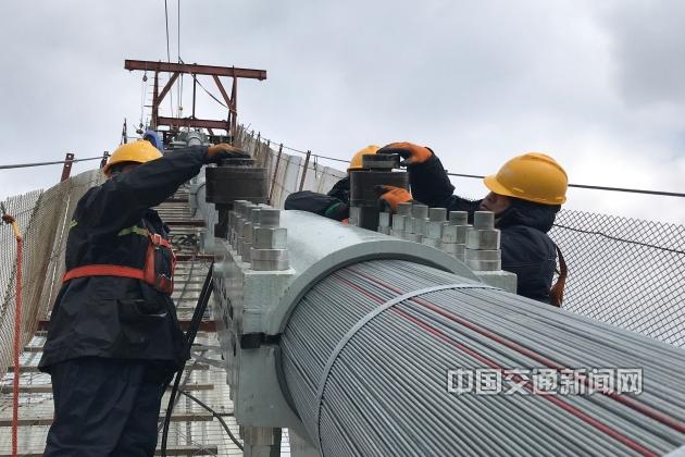 虎年伊始,由杭州市交通投資集團(tuán)有限公司投資建設(shè)的京杭運(yùn)河浙江段三級航道整治工程杭州段九橋路大橋項(xiàng)目已全面復(fù)工,工人們正在進(jìn)行索夾緊固。(趙陽 鄧慧媛)