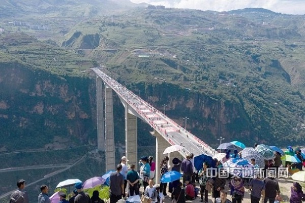 6月30日,由蜀道投資集團所屬四川路橋建設(shè)集團股份有限公司承建的涼山彝族自治州金陽河三峽連心橋建成通車,為彝族群眾架起鄉(xiāng)村振興“快速通道”。大橋位于涼山州金陽縣城北,全長757.7米,最大跨徑200米,其中6號橋墩高達196米。