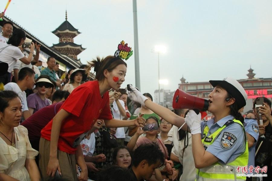 圖為民警與觀眾互動(dòng)。