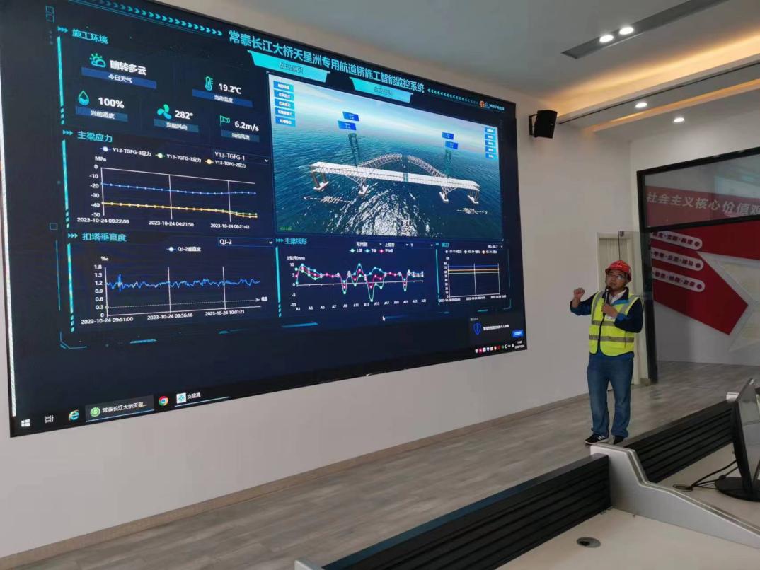 數(shù)字孿生系統(tǒng),不僅方便了解施工現(xiàn)狀,而且能進(jìn)行仿真推演,優(yōu)化施工方案。在天星洲專用航道橋施工過程中,利用數(shù)字孿生技術(shù),搭建云端無線采集系統(tǒng),全方位實時獲取橋梁施工相關(guān)數(shù)據(jù)。讓數(shù)據(jù)“在電腦上多跑路”,對施工控制數(shù)據(jù)進(jìn)行實時分析,實時預(yù)警,確保結(jié)構(gòu)施工過程始終處于可控狀態(tài);以不同顏色區(qū)分當(dāng)前桿件安裝狀態(tài),實現(xiàn)工序級別的形象進(jìn)度展示及基于工序的質(zhì)量驗收;而且平臺內(nèi)可以對施工工序模擬,保障現(xiàn)場構(gòu)件保供安排,確保施工質(zhì)量、物資調(diào)度、進(jìn)度安排合理可控……