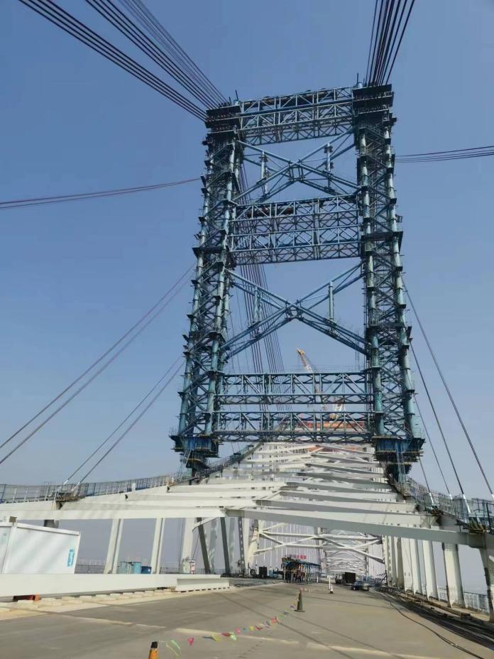 通過一系列的精細(xì)化管理手段,常泰長江大橋在建設(shè)過程中實現(xiàn)了“四個首創(chuàng)”——新型塔梁約束體系、空間鉆石型橋塔、臺階型沉井基礎(chǔ)以及組合索塔等錨固結(jié)構(gòu);“六個世界之最”——最大規(guī)模多功能荷載非對稱布置橋梁,最大跨度斜拉橋、最大連續(xù)長度鋼桁梁、最大尺度碳纖維復(fù)合材料拉索、最大跨度公鐵兩用鋼桁拱橋、最高強度橋用平行鋼絲斜拉索。