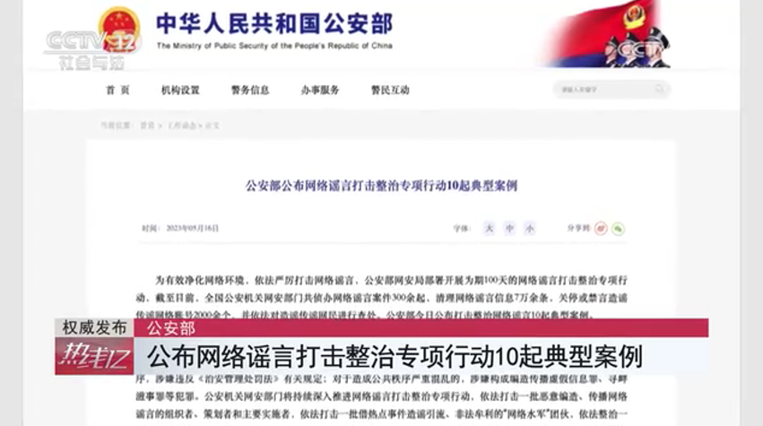 公安部 公布網(wǎng)絡謠言打擊整治專項行動10起典型案例