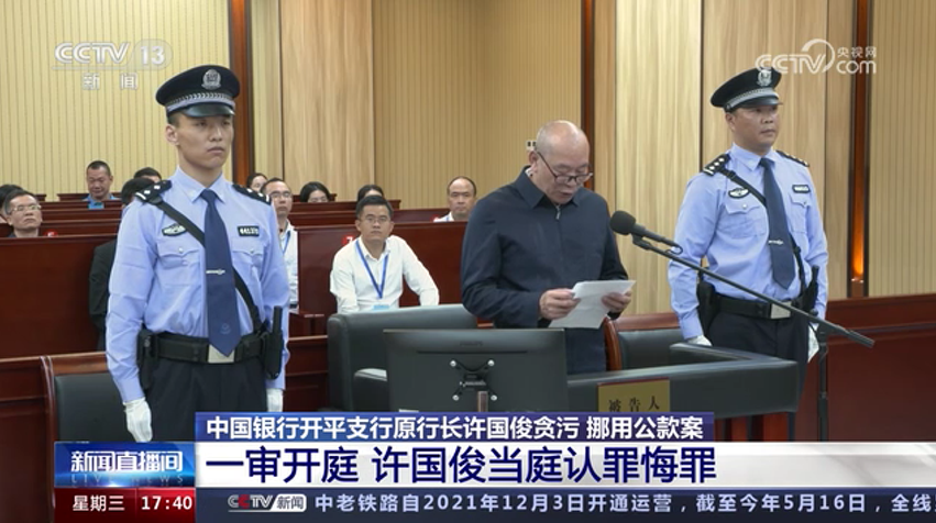 中國銀行開平支行原行長許國俊貪污 挪用公款案 一審開庭 許國俊當庭認罪悔罪