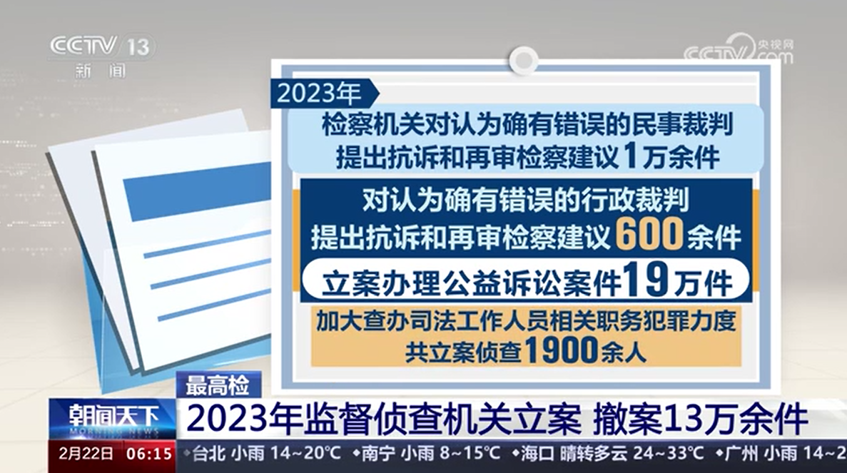 最高檢 2023年監(jiān)督偵查機(jī)關(guān)立案 撤案13萬(wàn)余件