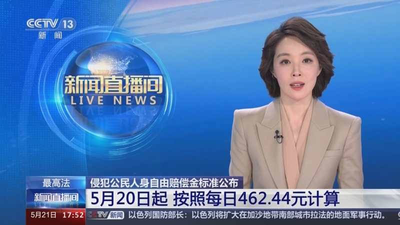 最高法 侵犯公民人身自由賠償金標準公布 5月20日起 按照每日462.44元計算
