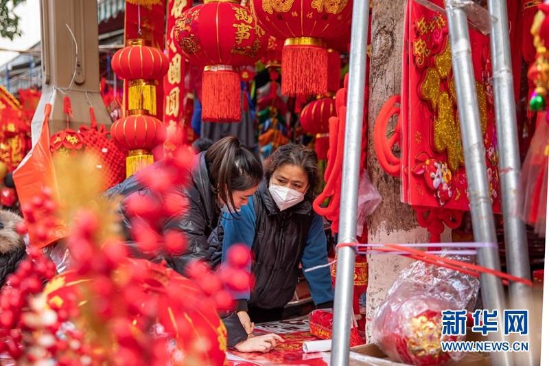 “?!弊帧⒅袊Y(jié)、新春對聯(lián)、兔年玩偶……琳瑯滿目的商品,熙熙攘攘的市場,討價(jià)還價(jià)聲此起彼伏,一派喜慶繁忙的熱鬧景象。