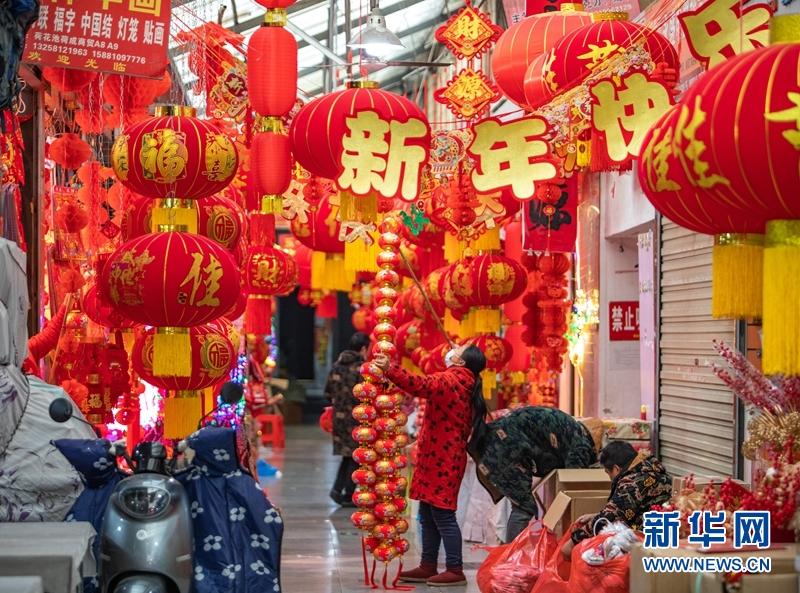 佳節(jié)將至,成都荷花池批發(fā)市場開啟了“春節(jié)模式”,各個(gè)店鋪喜氣洋洋,眾多市民前來逛街、辦年貨。