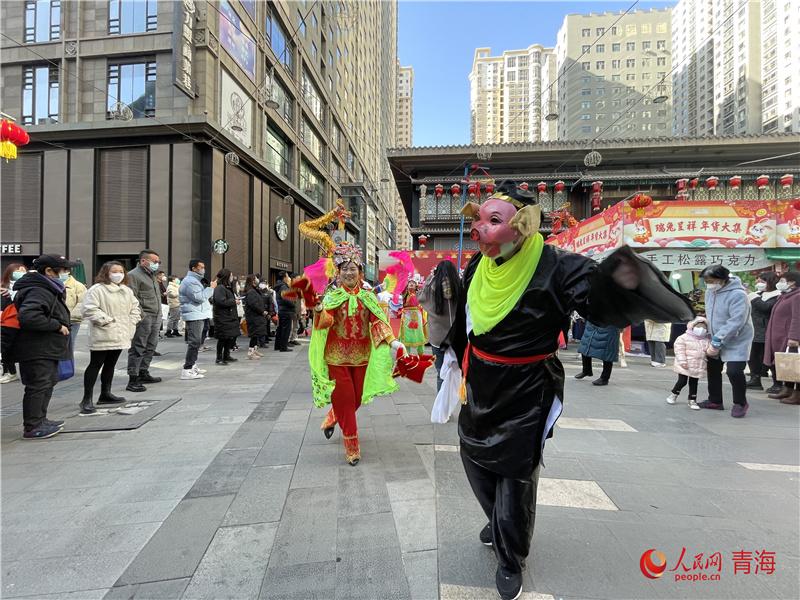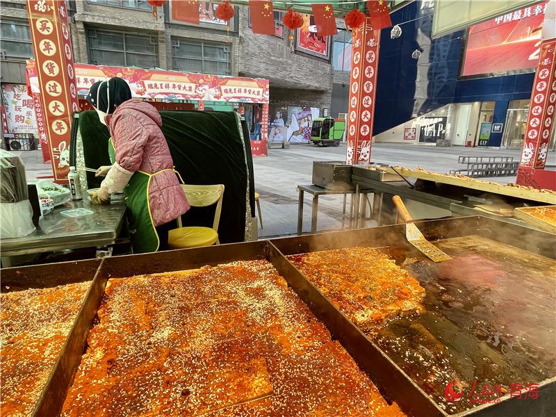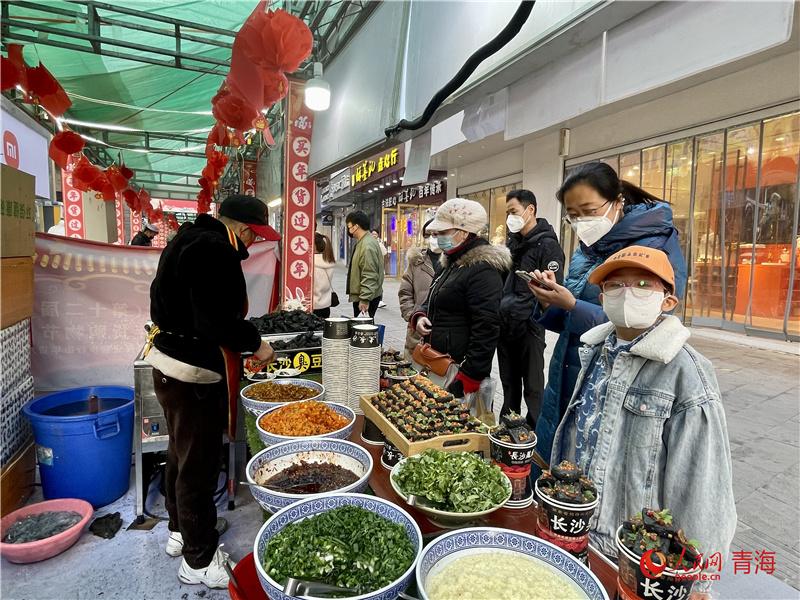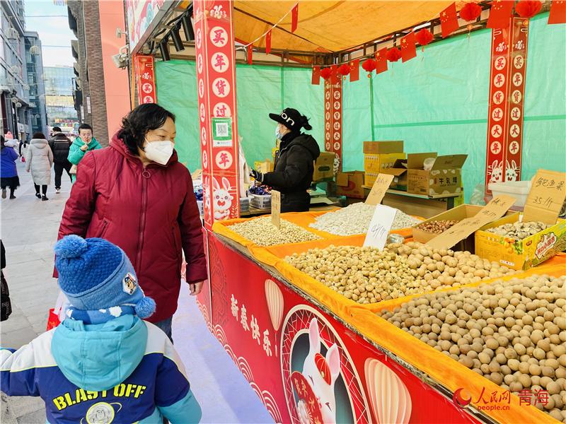 力盟商業(yè)步行街是西寧市繁華熱鬧的街區(qū)之一,瓜子糖果、春聯(lián)燈籠、海鮮肉類等年貨琳瑯滿目;糖葫蘆、臭豆腐、棉花糖等各色美食香氣撲鼻,市民聚集于此,體會(huì)濃濃年味,感受城市煙火氣。