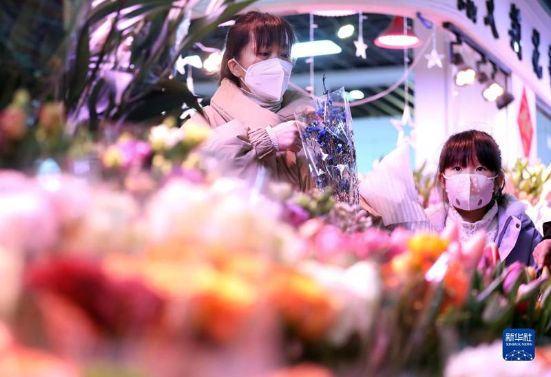 1月18日,市民在沈陽(yáng)北市場(chǎng)花卉大廳購(gòu)買(mǎi)鮮花。