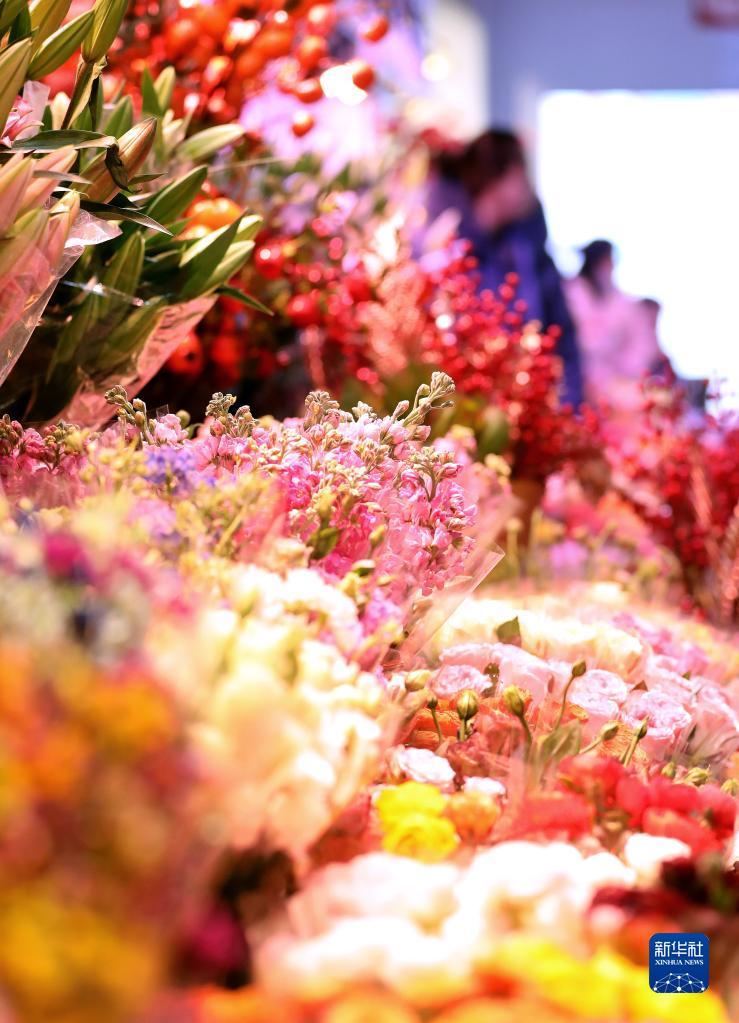 這是在沈陽(yáng)北市場(chǎng)花卉大廳內(nèi)待售的鮮花(1月18日攝)。
