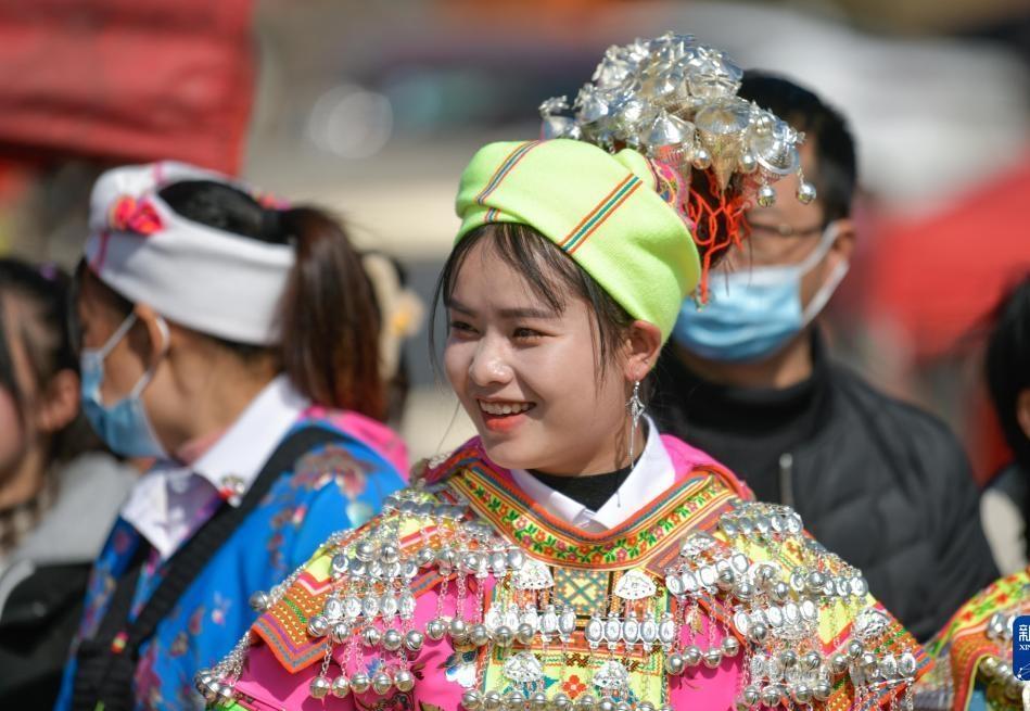 在貴州省黔南布依族苗族自治州龍里縣龍山鎮(zhèn)中排村,各村寨的苗族群眾歡聚一堂,舉行一年一度的“跳月”活動,歡慶新春