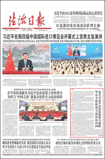 在中央全面依法治國(guó)工作會(huì)議召開(kāi)一周年之際,中央依法治國(guó)辦11月4日召開(kāi)深入學(xué)習(xí)貫徹習(xí)近平法治思想座談會(huì)。會(huì)議強(qiáng)調(diào),要把深入學(xué)習(xí)宣傳貫徹習(xí)近平法治思想作為一項(xiàng)長(zhǎng)期的重大政治任務(wù),在學(xué)深悟透做實(shí)上持續(xù)用力,加快建設(shè)良法善治的法治中國(guó),為續(xù)寫(xiě)“中國(guó)之治”新篇章提供有力法治保障。