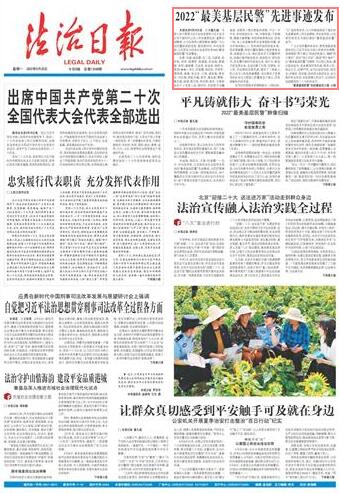 本報(bào)北京9月25日訊 記者董凡超 為深入學(xué)習(xí)貫徹習(xí)近平法治思想和習(xí)近平總書記關(guān)于新時(shí)代公安工作的重要論述、重要訓(xùn)詞精神,大力弘揚(yáng)偉大建黨精神,激勵(lì)廣大公安民警奮進(jìn)新征程、建功新時(shí)代,中央宣傳部、公安部近日向全社會(huì)宣傳發(fā)布2022“最美基層民警”先進(jìn)事跡。