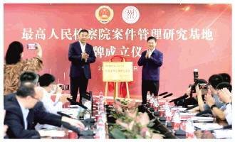 本報(bào)訊 記者蔣安杰 日前,最高人民檢察院檢察案件管理研究基地揭牌成立儀式在中國(guó)人民大學(xué)舉行。最高人民檢察院黨組副書記、常務(wù)副檢察長(zhǎng)童建明與中國(guó)人民大學(xué)黨委書記張東剛分別為檢察案件管理研究基地的成立致辭,并共同為基地揭牌。