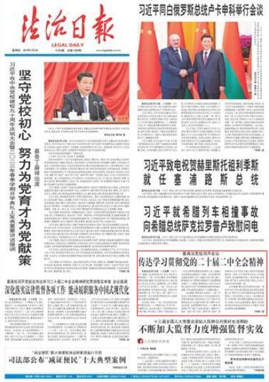 本報北京3月1日訊 記者張晨 3月1日下午,最高人民法院黨組召開會議,傳達學(xué)習(xí)貫徹黨的二十屆二中全會精神,研究部署貫徹落實措施。最高人民法院黨組書記、院長周強主持會議并講話,強調(diào)要深入學(xué)習(xí)貫徹習(xí)近平總書記在黨的二十屆二中全會上的重要講話精神,把思想和行動統(tǒng)一到黨中央決策部署上來,牢記“國之大者”,落實“三個更好統(tǒng)籌”,充分發(fā)揮審判職能作用,以高質(zhì)量司法服務(wù)高質(zhì)量發(fā)展。