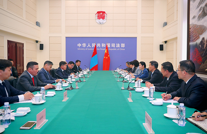 賀榮向尼亞木巴特爾介紹了習近平法治思想引領下新時代中國法治建設取得的巨大成就,中國司法部正在立足職能,為推進中國式現(xiàn)代化提供有力法治保障。她表示,中國司法部愿同蒙古國法律內務部一道,落實好兩國領導人達成的重要共識,在已開展良好交流合作的基礎上,繼續(xù)深化司法協(xié)助、被判刑人移管以及律師、公證、仲裁、司法鑒定等法律服務領域的務實合作,更好運用法治方式服務兩國經濟社會發(fā)展,為推動中蒙全面戰(zhàn)略伙伴關系行穩(wěn)致遠貢獻法治力量。