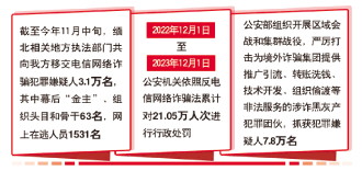 ——2022年12月1日至2023年12月1日,公安機(jī)關(guān)依照反電信網(wǎng)絡(luò)詐騙法累計(jì)對(duì)21.05萬人次進(jìn)行行政處罰。