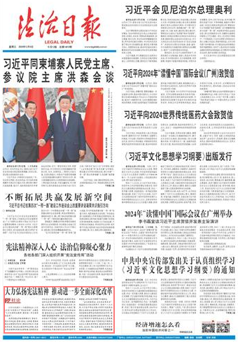 以中國(guó)式現(xiàn)代化全面推進(jìn)強(qiáng)國(guó)建設(shè)、民族復(fù)興偉業(yè),是新時(shí)代新征程黨和國(guó)家的中心任務(wù)。黨的二十屆三中全會(huì)指出“法治是中國(guó)式現(xiàn)代化的重要保障”,把“堅(jiān)持全面依法治國(guó)”“做到改革和法治相統(tǒng)一”等作為進(jìn)一步全面深化改革原則的重要內(nèi)容,明確強(qiáng)調(diào)“必須全面貫徹實(shí)施憲法,維護(hù)憲法權(quán)威”。憲法的生命在于實(shí)施,憲法的權(quán)威也在于實(shí)施。我們要持之以恒地大力弘揚(yáng)憲法精神,全面貫徹實(shí)施憲法,更好發(fā)揮法治的積極作用,推動(dòng)進(jìn)一步全面深化改革。