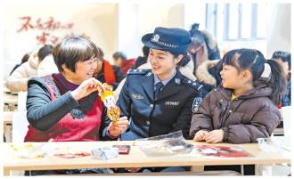 圖為上海市公安局崇明分局城橋派出所民警將反詐宣傳與猜燈謎結合,讓群眾在寓教于樂中學到反詐知識。 沈群 攝