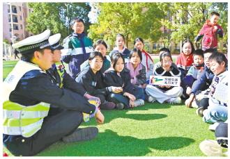 圖為江西省武寧縣公安局交管大隊民警近日走進(jìn)武寧縣第四小學(xué),開展“文明交通 禮行天下”主題宣傳活動。 熊遙 攝