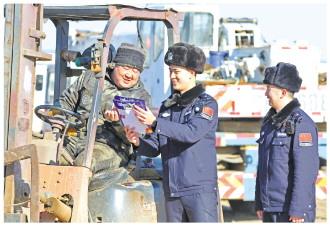 圖為遼寧出入境邊防檢查總站丹東邊境管理支隊(duì)新興邊境派出所民警近日深入轄區(qū)碼頭,一邊對上塢船只進(jìn)行登記檢查,一邊宣傳邊境法規(guī)政策與防范電信網(wǎng)絡(luò)詐騙知識。 鞠鑫 攝