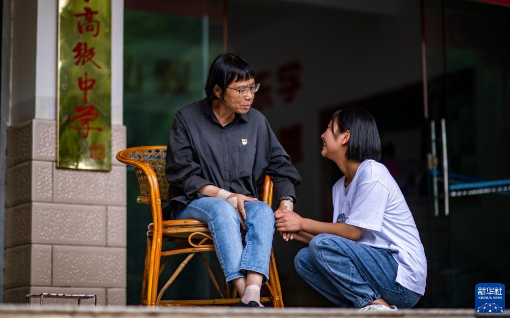 云南麗江華坪女子高級(jí)中學(xué)黨支部書記、校長(zhǎng)張桂梅在校園內(nèi)與學(xué)生交談(2021年8月23日攝)。新華社記者 江文耀 攝