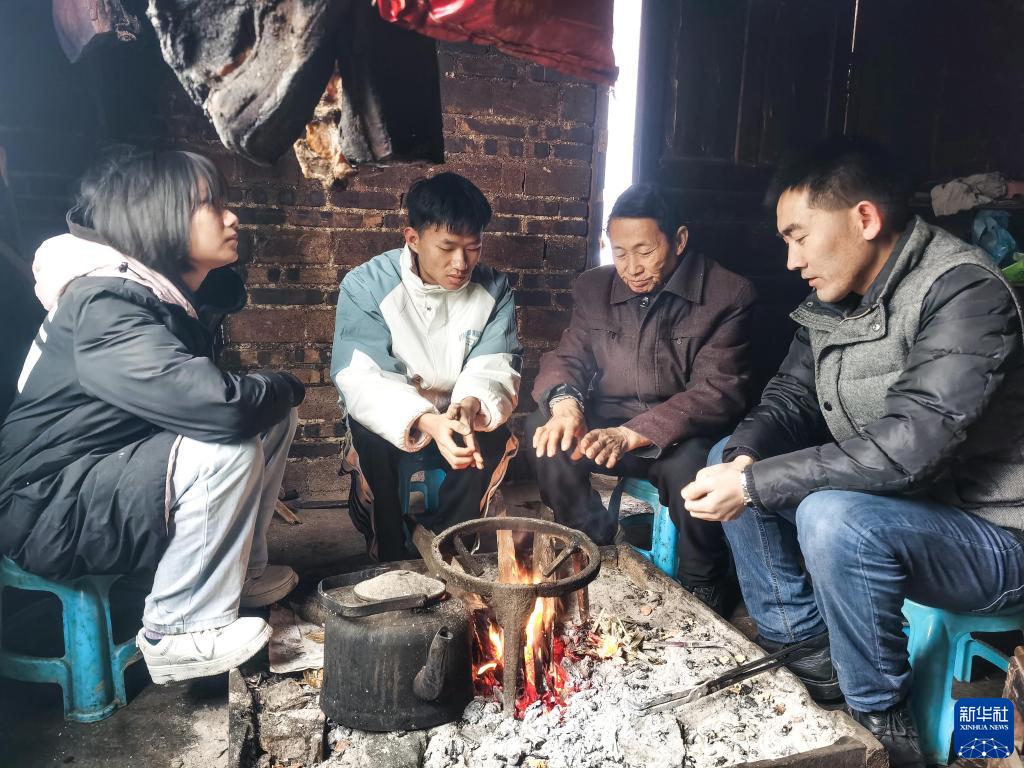 貴州省望謨縣實驗高中黨總支副書記、副校長劉秀祥(右一)在學(xué)生家中家訪(2022年2月1日攝)。新華社發(fā)