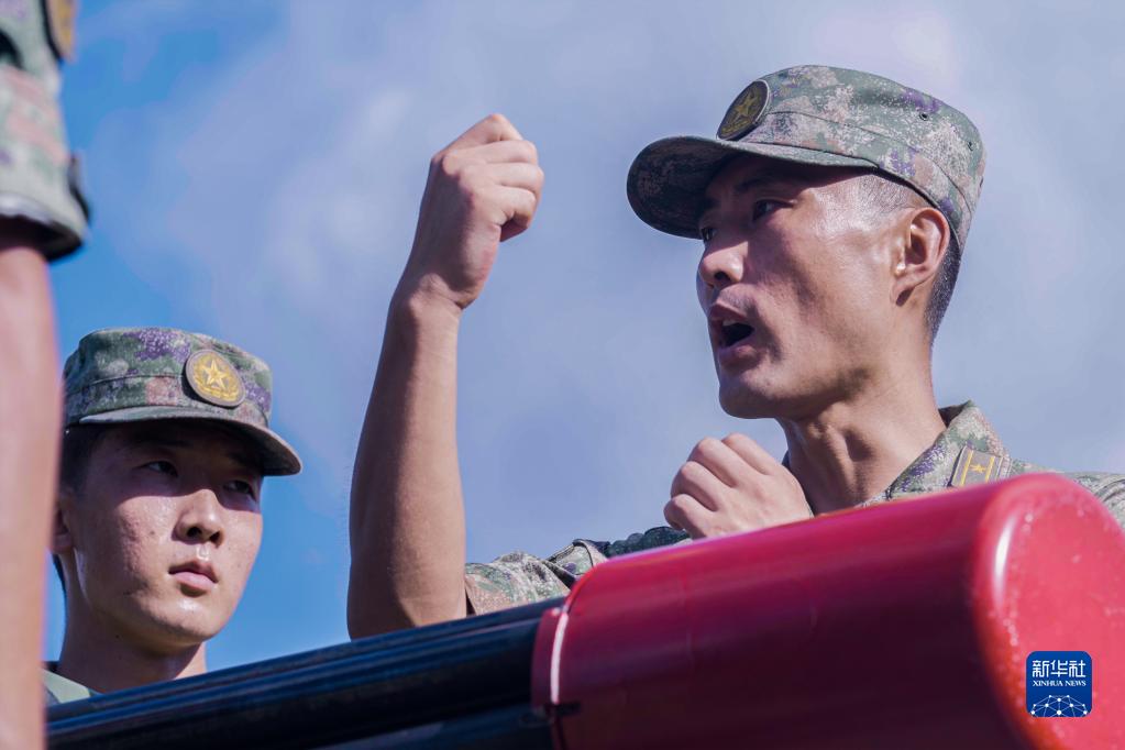 某次演訓(xùn)中,駐香港部隊(duì)某團(tuán)防空營(yíng)營(yíng)長(zhǎng)王海旭(前)下達(dá)“發(fā)射”防空導(dǎo)彈命令(2022年7月21日攝)。新華社發(fā)(田越洋 攝)