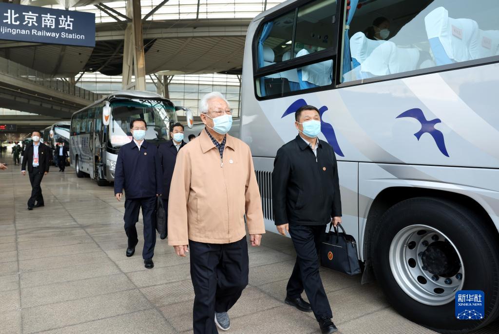 10月13日,來(lái)自?xún)?nèi)蒙古自治區(qū)的黨的二十大代表乘高鐵抵達(dá)北京北站。新華社記者 張玉薇 攝