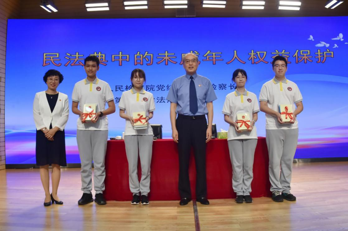 張軍說:“檢察機關是國家法律監(jiān)督機關,也是唯一參與未成年人司法保護全過程的政法機關,將多措并舉,不折不扣把實施民法典貫穿未成年人檢察工作始終,與老師、廣大同學和家長們一起,共同守護、見證同學們的健康成長,培養(yǎng)成未來祖國建設的棟梁之材。”