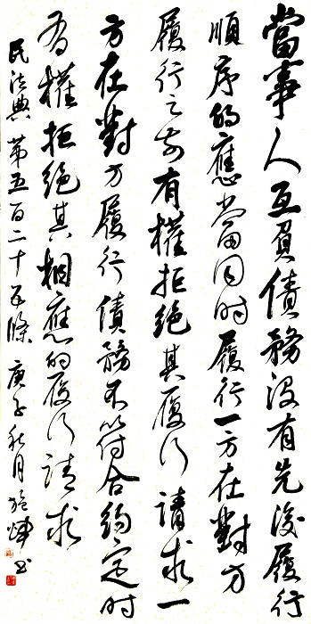 民法典第五百二十五條 當(dāng)事人互負(fù)債務(wù),沒(méi)有先后履行順序的,應(yīng)當(dāng)同時(shí)履行。一方在對(duì)方履行之前有權(quán)拒絕其履行請(qǐng)求。一方在對(duì)方履行債務(wù)不符合約定時(shí),有權(quán)拒絕其相應(yīng)的履行請(qǐng)求。