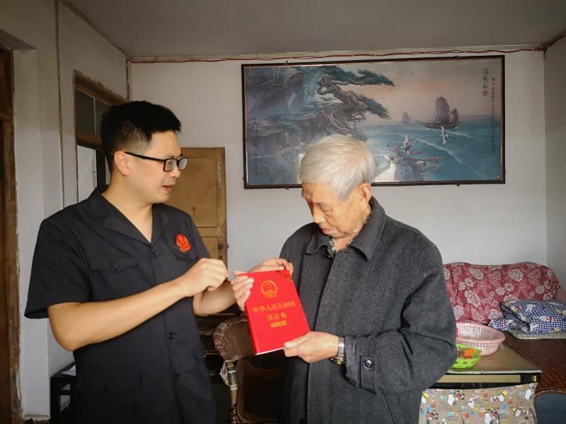 鑒于2021年1月1日即將施行的《民法典》合同編與現(xiàn)行合同法相比存在部分變化,為便于黃老更進(jìn)一步了解即將施行的民法典合同編內(nèi)容,大觀法庭決定將《民法典》送給黃老??紤]到黃老年歲已大,行動(dòng)不便,法庭干警親自上門將民法典送到了黃老手里,劉小彬還為黃老講述《民法典》中的亮點(diǎn)內(nèi)容及合同編的變化,并解答黃老及家屬關(guān)于法律問(wèn)題的咨詢。