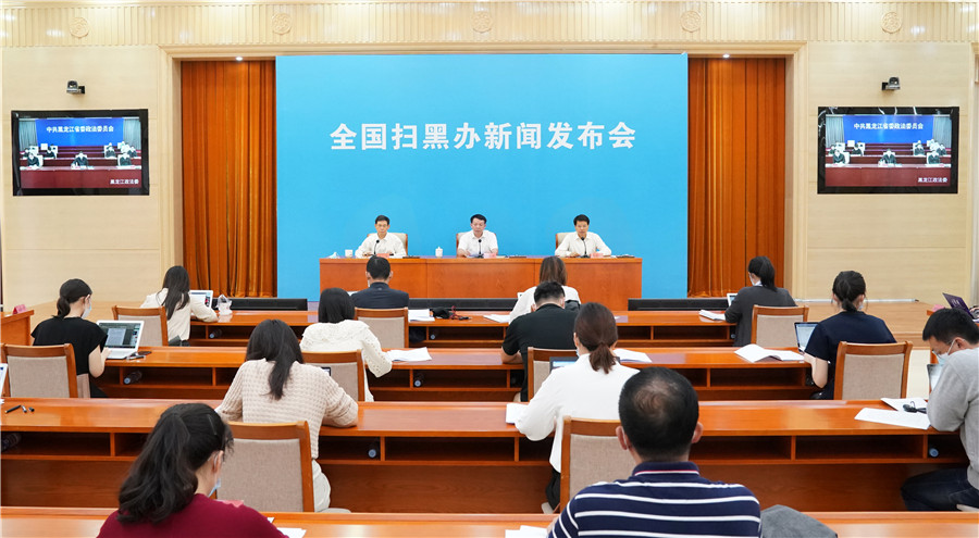 天津、黑龍江、貴州、新疆掃黑除惡專項斗爭領(lǐng)導小組負責同志通過視頻連線,向新聞媒體介紹了相關(guān)案件辦理情況,并回答記者提問。