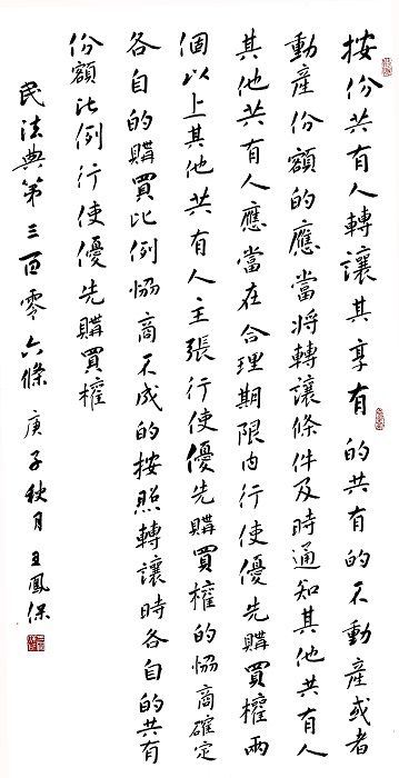 民法典第三百零六條 按份共有人轉讓其享有的共有的不動產或者動產份額的,應當將轉讓條件及時通知其他共有人。其他共有人應當在合理期限內行使優(yōu)先購買權。
