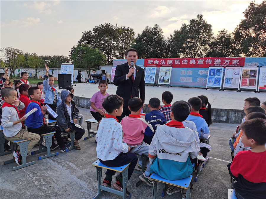 近日,江西省新余市兩級(jí)法院采取合唱、快板、法律問答、普法情景劇等群眾喜聞樂見的形式,積極開展民法典巡回宣講活動(dòng),實(shí)現(xiàn)全市39個(gè)鄉(xiāng)鎮(zhèn)全覆蓋,觀眾達(dá)4000余人,發(fā)放宣傳冊(cè)近萬份,獲得群眾廣泛好評(píng)。