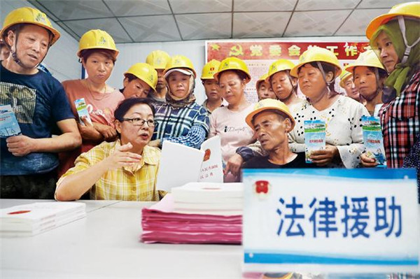 2020年8月26日,河北省唐山市豐潤區(qū)司法局組織律師走進社區(qū)、工地,為群眾提供免費法律援助。人民圖片 朱大勇/攝