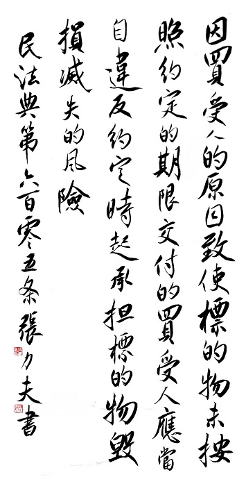 民法典第六百零五條 因買受人的原因致使標的物未按照約定的期限交付的,買受人應(yīng)當自違反約定時起承擔標的物毀損、滅失的風(fēng)險。