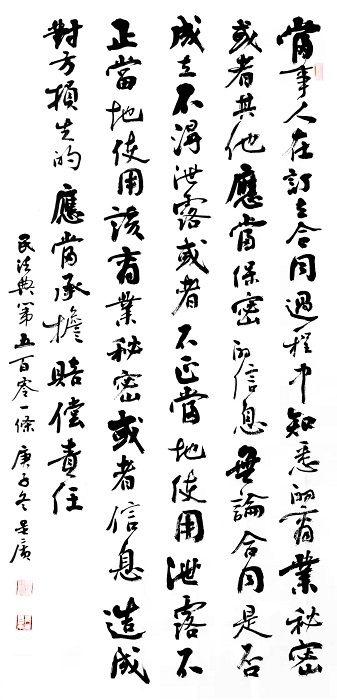 民法典第五百零一條 當(dāng)事人在訂立合同過(guò)程中知悉的商業(yè)秘密或者其他應(yīng)當(dāng)保密的信息,無(wú)論合同是否成立,不得泄露或者不正當(dāng)?shù)厥褂?;泄露、不正?dāng)?shù)厥褂迷撋虡I(yè)秘密或者信息,造成對(duì)方損失的,應(yīng)當(dāng)承擔(dān)賠償責(zé)任。