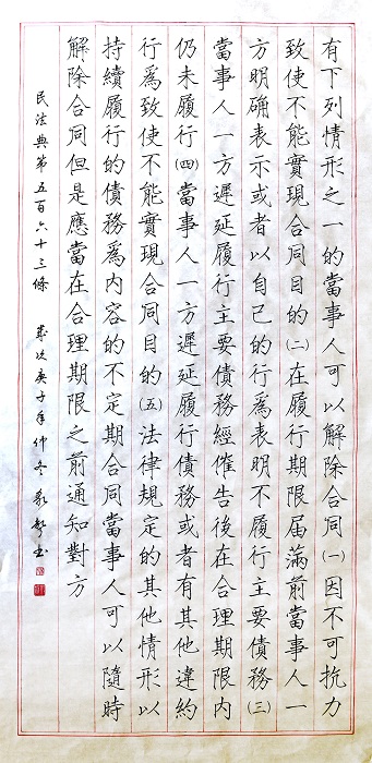 “書·法”活動(dòng)以書寫《中華人民共和國民法典》法條開筆,未來將對(duì)準(zhǔn)更多的法律。