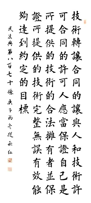 民法典第八百七十條 技術(shù)轉(zhuǎn)讓合同的讓與人和技術(shù)許可合同的許可人應當保證自己是所提供的技術(shù)的合法擁有者,并保證所提供的技術(shù)完整、無誤、有效,能夠達到約定的目標。