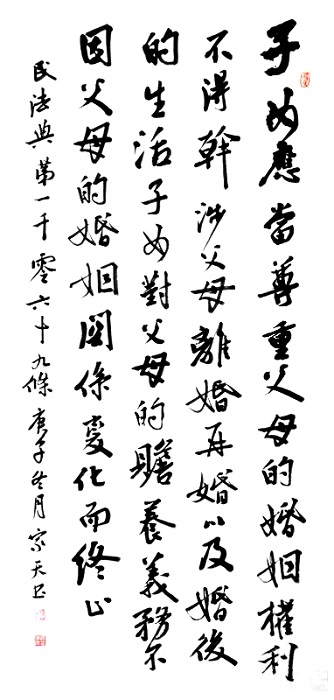 民法典第一千零六十九條 子女應(yīng)當(dāng)尊重父母的婚姻權(quán)利,不得干涉父母離婚、再婚以及婚后的生活。子女對父母的贍養(yǎng)義務(wù),不因父母的婚姻關(guān)系變化而終止。