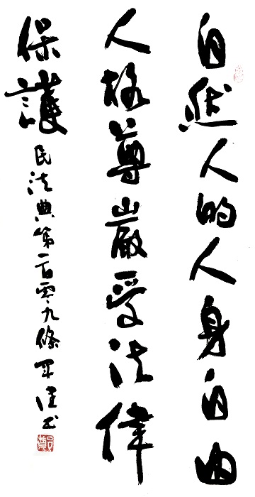 民法典第一百零九條 自然人的人身自由、人格尊嚴受法律保護。