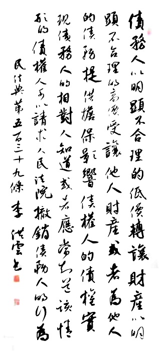 民法典第五百三十九條 債務(wù)人以明顯不合理的低價轉(zhuǎn)讓財產(chǎn)、以明顯不合理的高價受讓他人財產(chǎn)或者為他人的債務(wù)提供擔(dān)保,影響債權(quán)人的債權(quán)實現(xiàn),債務(wù)人的相對人知道或者應(yīng)當(dāng)知道該情形的,債權(quán)人可以請求人民法院撤銷債務(wù)人的行為。