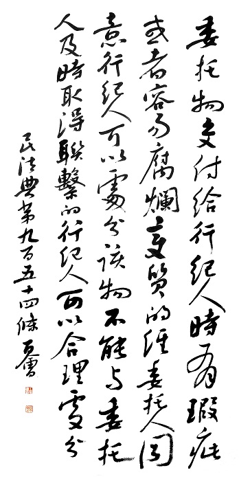 民法典第九百五十四條 委托物交付給行紀(jì)人時有瑕疵或者容易腐爛、變質(zhì)的,經(jīng)委托人同意,行紀(jì)人可以處分該物;不能與委托人及時取得聯(lián)系的,行紀(jì)人可以合理處分。