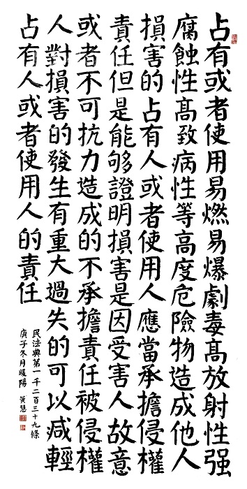民法典第一千二百三十九條 占有或者使用易燃、易爆、劇毒、高放射性、強(qiáng)腐蝕性、高致病性等高度危險(xiǎn)物造成他人損害的,占有人或者使用人應(yīng)當(dāng)承擔(dān)侵權(quán)責(zé)任;但是,能夠證明損害是因受害人故意或者不可抗力造成的,不承擔(dān)責(zé)任。被侵權(quán)人對(duì)損害的發(fā)生有重大過失的,可以減輕占有人或者使用人的責(zé)任。