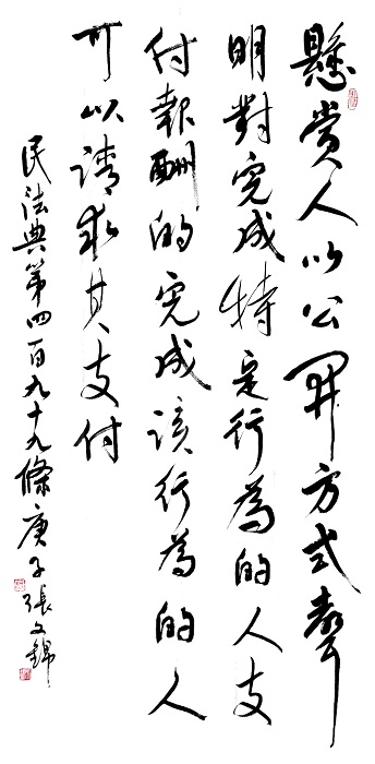 民法典第四百九十九條 懸賞人以公開方式聲明對完成特定行為的人支付報酬的,完成該行為的人可以請求其支付。