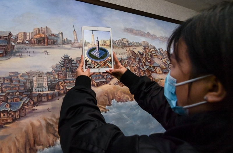 近年來,重慶紅巖革命紀(jì)念館積極推動革命文物活化利用,讓革命文物資源融入到當(dāng)代文化生產(chǎn)和生活方式中,讓紅巖革命文物“活”起來。圖為工作人員在重慶紅巖革命紀(jì)念館“紅巖記憶”數(shù)字體驗廳內(nèi)使用移動設(shè)備演示AR互動展示技術(shù)(2020年12月9日攝)。新華社記者 李賀/攝