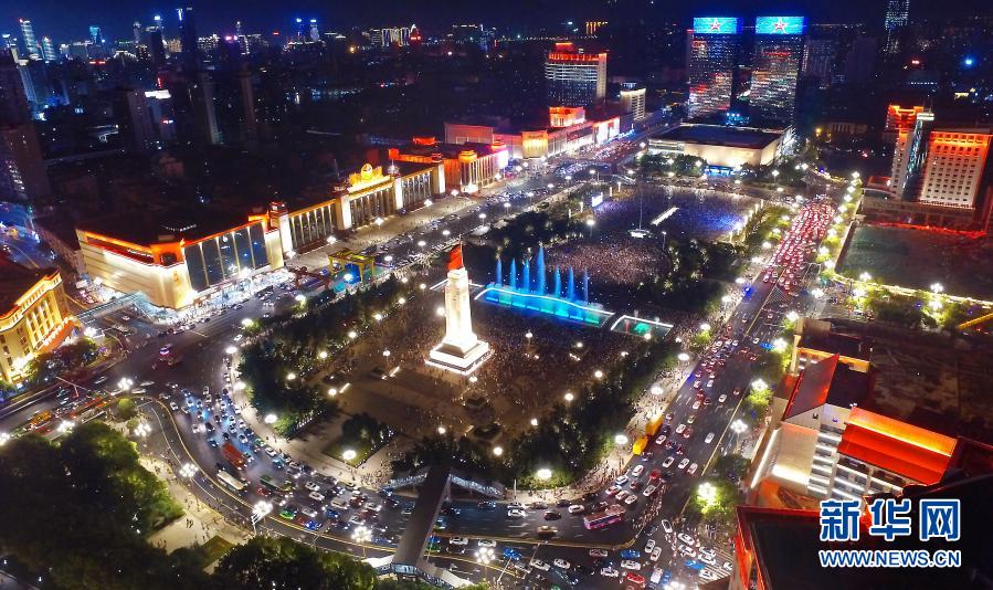 2017年7月30日拍攝的南昌八一廣場(chǎng)夜景。新華社記者 萬(wàn)象 攝